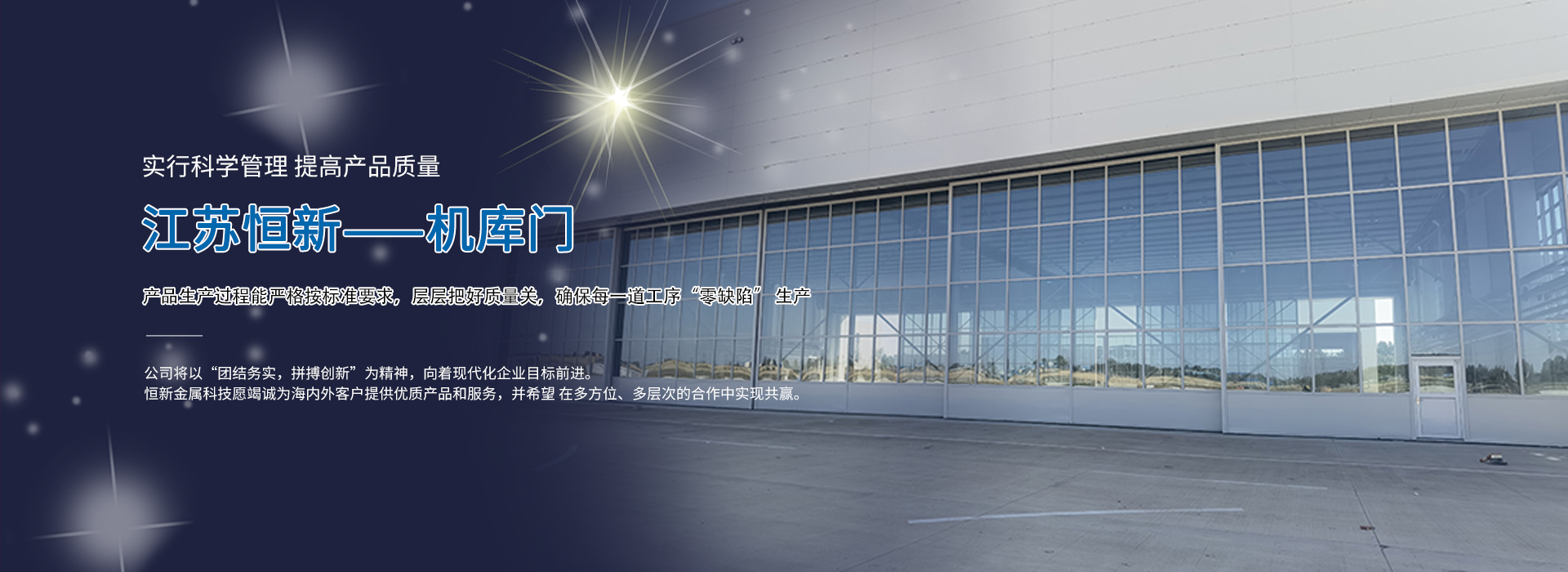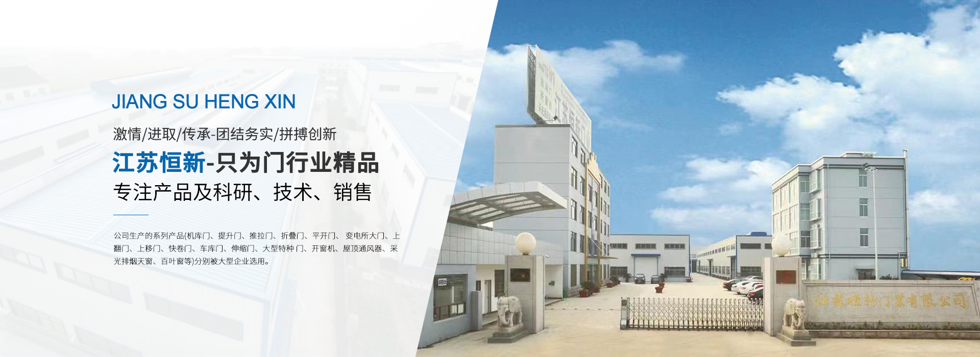 江蘇恒新金屬科技有限公司(原江蘇恒新門(mén)業(yè)有限公司)是集科研開(kāi)發(fā)、生產(chǎn)制造、經(jīng)營(yíng)銷(xiāo)售和技術(shù)服務(wù)于一體的專(zhuān)業(yè)公司,公司位于江蘇省靖江市馬橋開(kāi)發(fā)區(qū),占地面積20000多平方米, 資產(chǎn)總值近 5000萬(wàn)元。職工200余人,各類(lèi)專(zhuān)業(yè)人員40余人,其中高、中級(jí)技術(shù)人員達(dá)20余人,各種生產(chǎn)及檢測(cè)設(shè)備齊全,產(chǎn)銷(xiāo)能力15000萬(wàn)元。公司擁有一支高素質(zhì)的管理團(tuán)隊(duì)、專(zhuān)業(yè)的產(chǎn)品設(shè)計(jì)開(kāi)發(fā)智囊團(tuán)、經(jīng)驗(yàn)豐富的銷(xiāo)售精英、技術(shù)精湛的生產(chǎn)技工及優(yōu)秀的安裝售后服務(wù)隊(duì)伍,能充分滿(mǎn)足客戶(hù)對(duì)產(chǎn)品質(zhì)量、交貨速度、安裝進(jìn)度和售后服務(wù)的要求。公司生產(chǎn)的系列產(chǎn)品(機(jī)庫(kù)門(mén)、提升門(mén)、推拉門(mén)、折疊門(mén)、平開(kāi)門(mén)、 變電所大門(mén)、上翻門(mén)、上移門(mén)、快卷門(mén)、車(chē)庫(kù)門(mén)、伸縮門(mén)、大型特種 門(mén)、開(kāi)窗機(jī)、屋頂通風(fēng)器、采光排煙天窗、百葉窗等)分別被大型企業(yè)選用。已參與在建和完工的大型項(xiàng)目有:江蘇田灣核電、大亞灣核電站、秦山核電站、華能集團(tuán)、華電集團(tuán)、東方重工、熔盛重工、浙江精工、寶鋼集團(tuán)、南鋼集團(tuán)、太鋼股份、山東濰柴、徐工集團(tuán)、三一重工、上海地鐵、北京京港、虹橋機(jī)場(chǎng)、陽(yáng)邏機(jī)場(chǎng)、南京 空降、空軍工程建設(shè)局、大連瓦軸、拉薩鐵路局、大慶油田、長(zhǎng)開(kāi)集 團(tuán)、西變集團(tuán)等。產(chǎn)品暢銷(xiāo)全國(guó)二十多個(gè)省、自治區(qū)、直轄區(qū),深受設(shè)計(jì)單位和用戶(hù)的好評(píng),具有較高的社會(huì)信譽(yù)度。